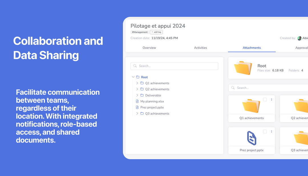 Integrated timesheets directly linked to WBS items with unified management of internal and external resources. Approval workflows for time validation with exact traceability from time spent to cost, budget, and outcomes.